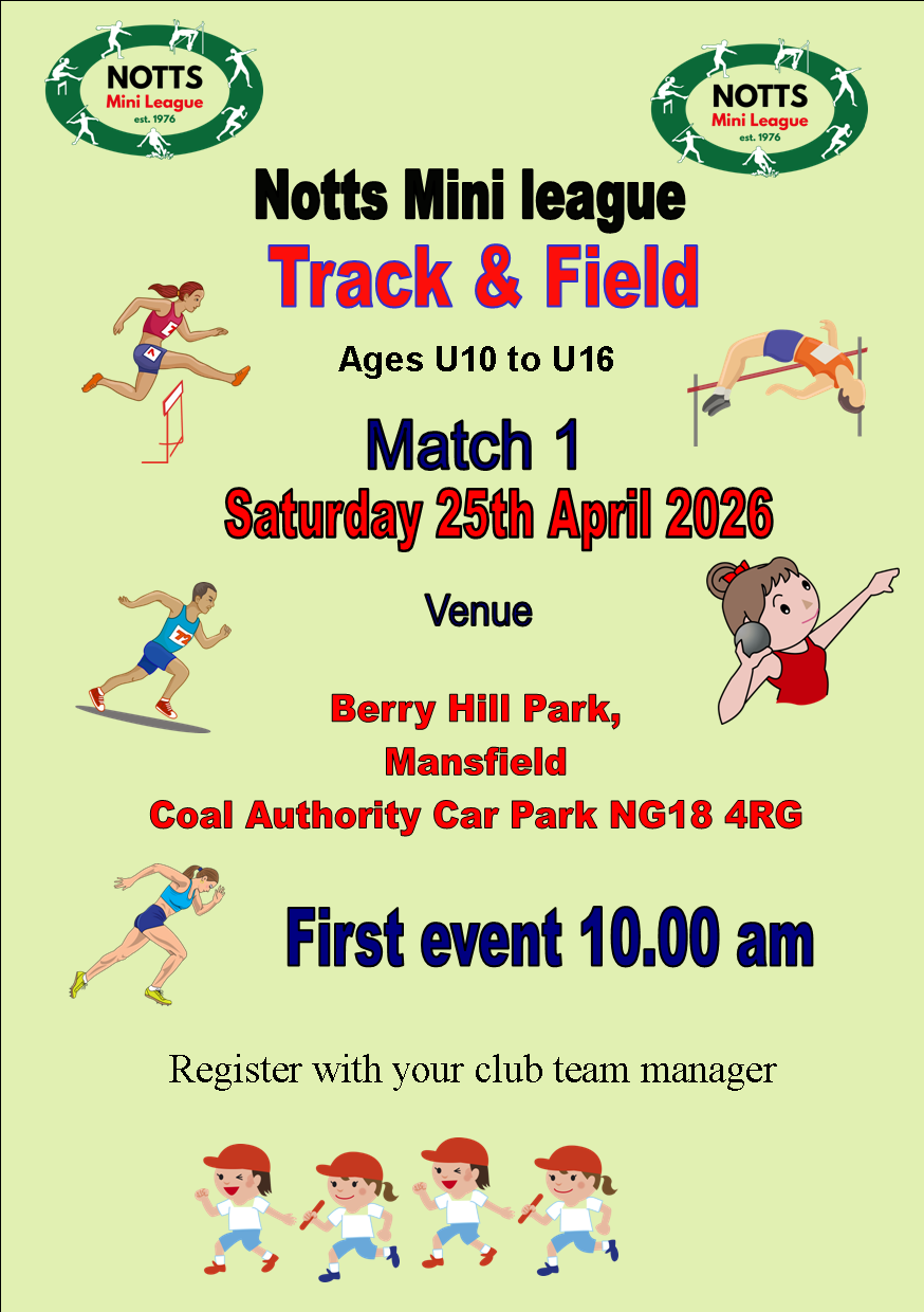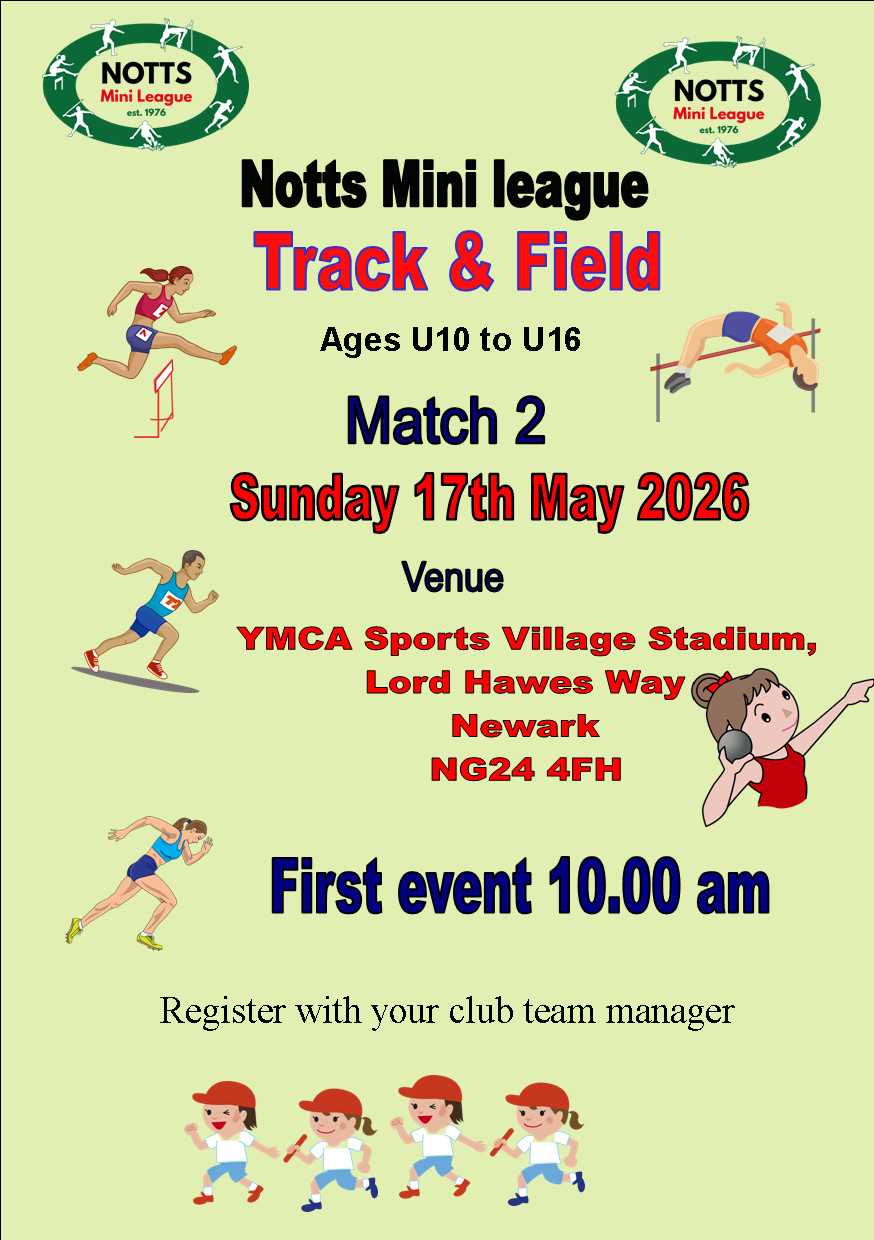 Notts Mini LeagueTrack & Field 2026see the dates and venues on the diary |